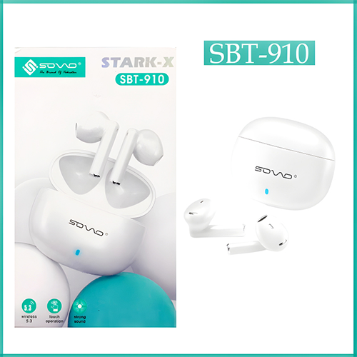 SOVO SBT-910 Stark-X Wireless 5.3 Touch Sound AirPods, engineered to elevate your audio experience to new heights. Designed for seamless connectivity and unparalleled sound quality, these AirPods are your ultimate companion for music, calls, and more.